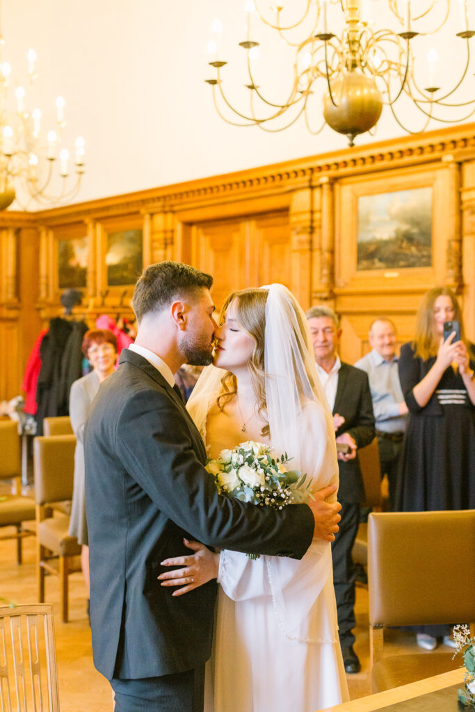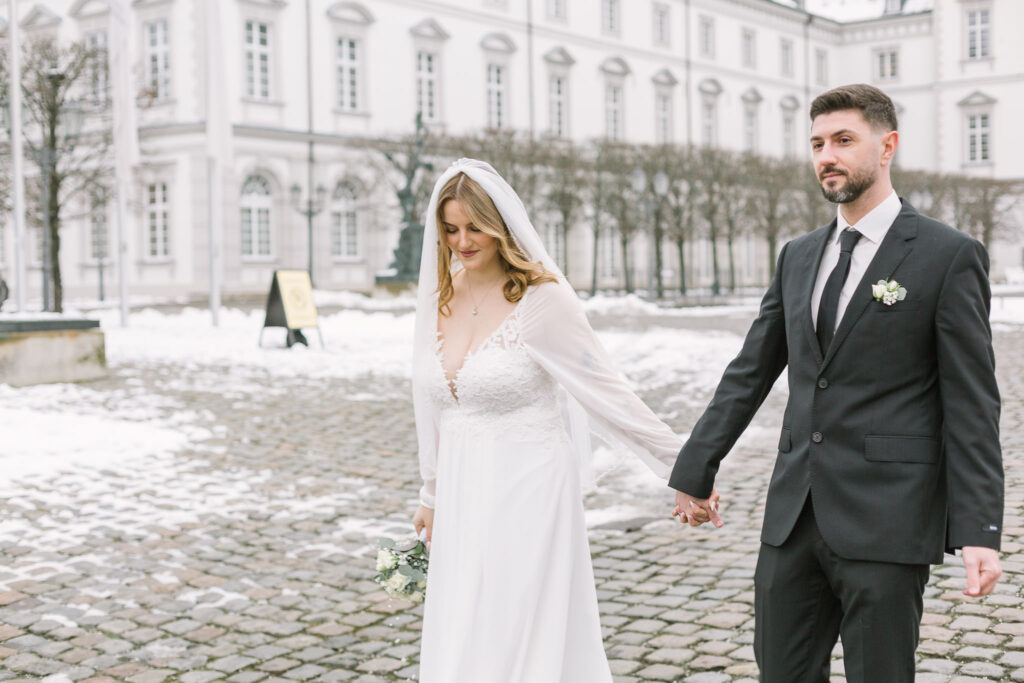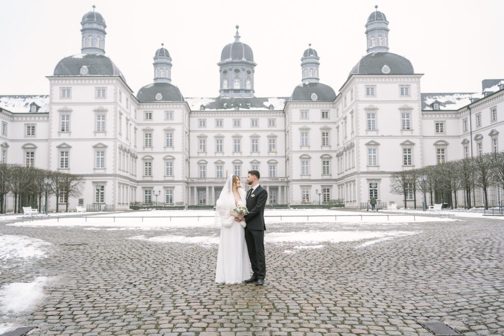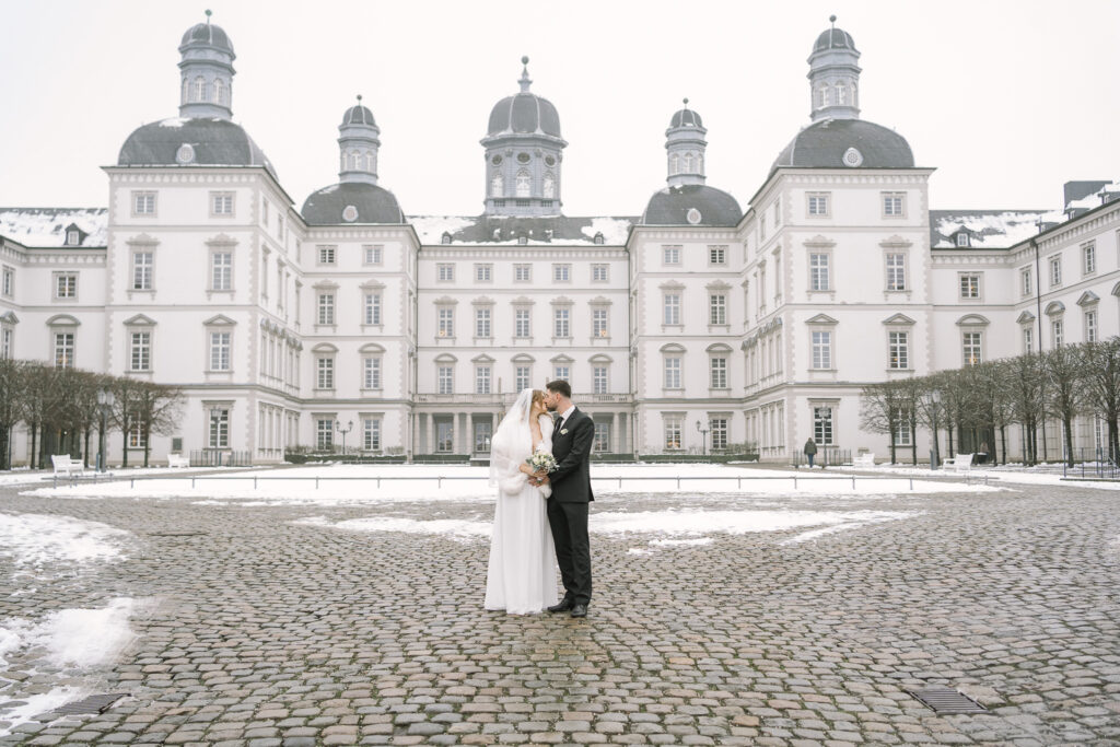 Die Trauung fand im Alten Rathaus Bergisch Gladbach statt. Ein Ort mit Charakter und genau der richtigen Atmosphäre für eine intime standesamtliche Hochzeit. Für das Paarshoot ging es anschließend vor die Kulisse von Schloss Bensberg. Ruhig, elegant, zeitlos – und perfekt, um echte Nähe und Verbundenheit festzuhalten. Manche Hochzeiten sind laut. Diese war leise. Und genau deshalb so berührend.