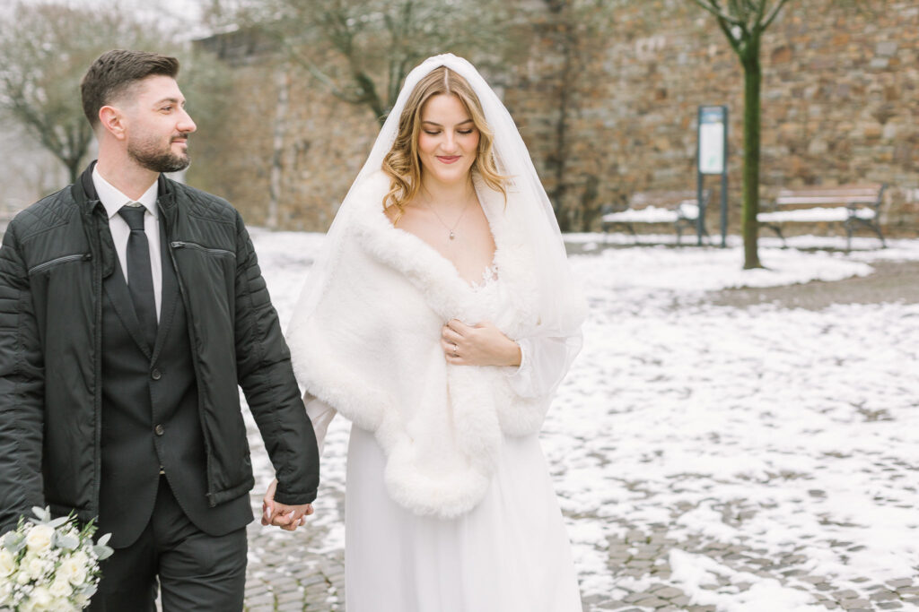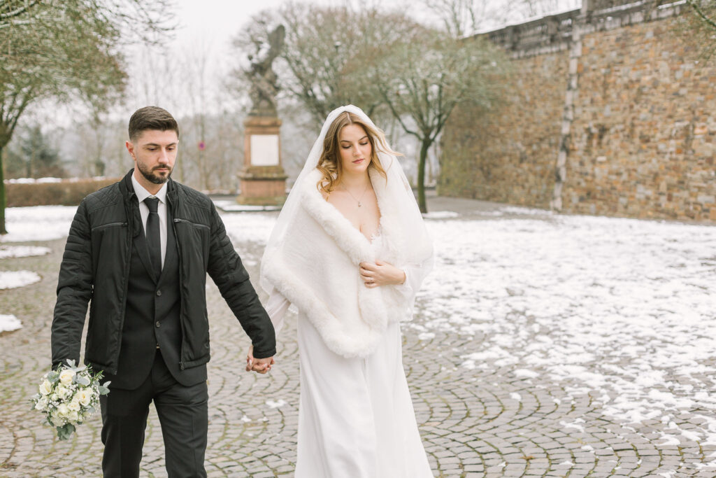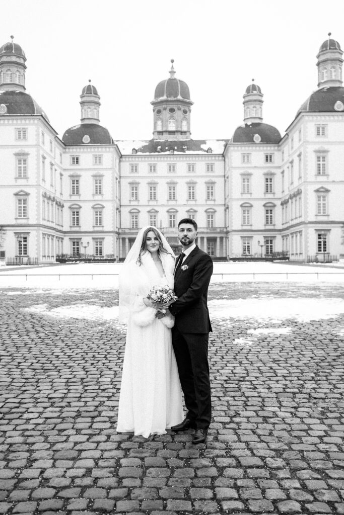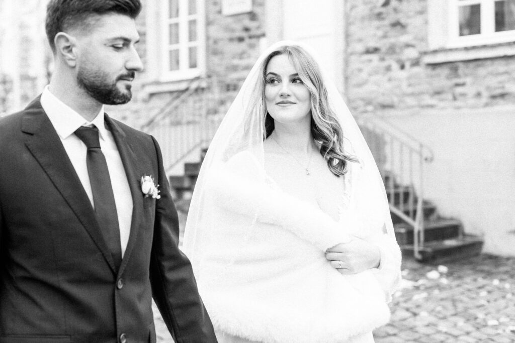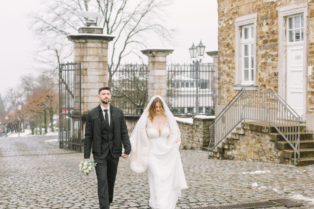 Die Trauung fand im Alten Rathaus Bergisch Gladbach statt. Ein Ort mit Charakter und genau der richtigen Atmosphäre für eine intime standesamtliche Hochzeit. Für das Paarshoot ging es anschließend vor die Kulisse von Schloss Bensberg. Ruhig, elegant, zeitlos – und perfekt, um echte Nähe und Verbundenheit festzuhalten. Manche Hochzeiten sind laut. Diese war leise. Und genau deshalb so berührend.